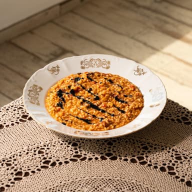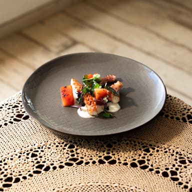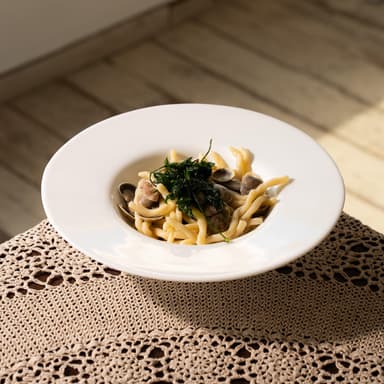 Schwalbennest-Teig, Ricotta, Weißer Meerschweinchen-Ragout, zarte Gratinierung
