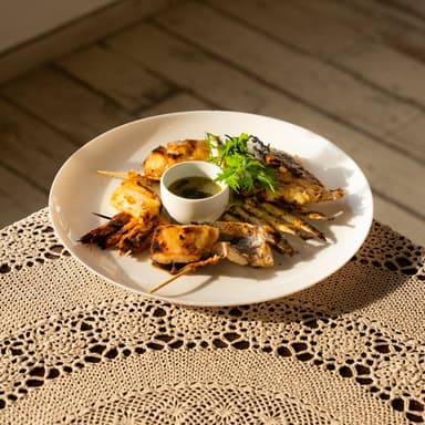 Grill selection of fillets, skewers, crustaceans, salmoriglio dressing (olive oil, lemon juice, salt – without garlic)