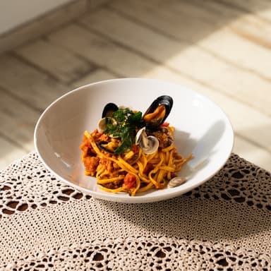Nido di rondine,ricotta, ragù di mare bianco, delicata gratinatura