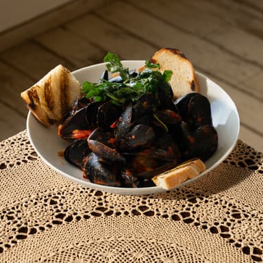 Cozza, vongola, calamaro, gambero, la sua bisque